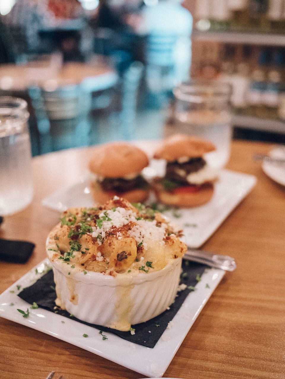 What is a shopping day without a boozy lunch? We went to locally-owned Moxie which is just around the corner from the mall, and it is THE BEST MEAL I’ve had all year. I kid you not. Did those pictures not make you drool!? The chicken and waffles came with a maple syrup mousse, the deviled eggs change daily and they are always some kind of cool creation, the meatloaf had a huge slap of provolone cheese on top, and the PIMENTO CHEESE DIP is the best thing I’ve ever eaten. I have to go back here one day!