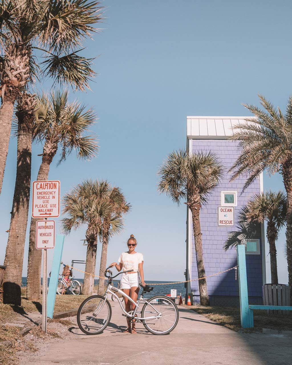 We stayed at two hotels. We stayed first at Four Points by Sheraton for a night on Jacksonville Beach (more South) which was perfect but then we stayed at Hotel Palms for some more “boutique hotel” vibes at Hotel Palms which is by Neptune Beach and near Beaches Town Center which is a really cool area. This hotel is a restored motel and it’s so unique. The rooms are actually really big, comfortable, and they serve coffee at a fun coffee bar in the morning. You can take bikes for free and ride to the beach.
