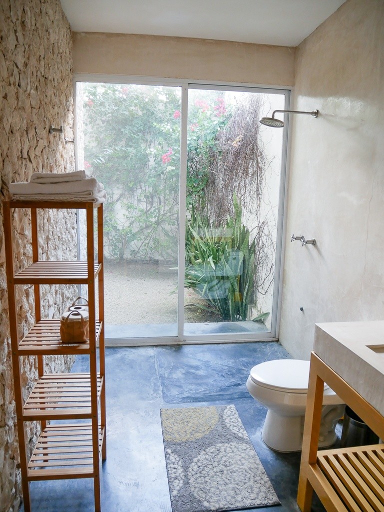 OMG – beautiful. Maybe the most beautiful one in all of Merida! It’s a one bedroom house which is separated but in the same complex as the owner’s main house. The pool separates them, but they are not always home and when they are gone they rent that out as well, so you sort of have the place to yourself. This place is beautiful and romantic. I cannot get over how beautiful it is!