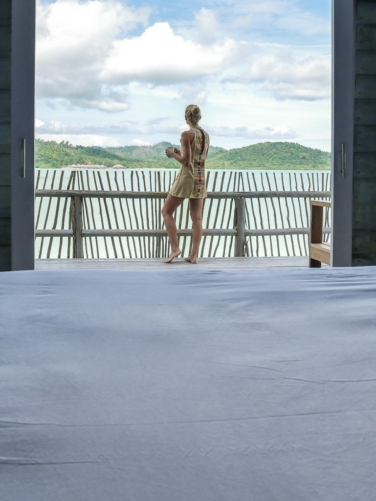The wood in the room is reclaimed, mostly from old fishing boats. These villas are stunning. You can’t walk in without being wowed – and they’ve been designed with all Malay and Indonesian touches. All 15 villas are the same with a living room, loft with two beds, a bedroom that opens to the ocean, and a bathroom. The rooms can fit up to 5 people.