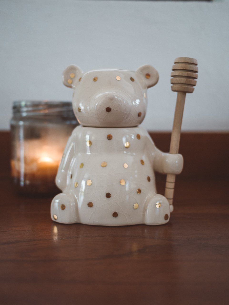 I bought a honey bear pot… to put honey in. LOOK AT HIM! He’s so cute. Then, because I had bears on the mind, I saw this bear glass and got two of those (and obviously already broke one because I took it to Mexico in my purse…).