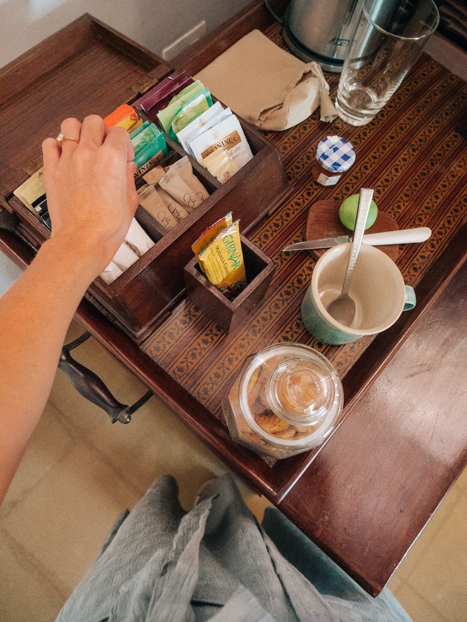 Samode is all about the small touches. They put a little note and chocolates on my bed at night and after the evening safaris (which got cold) they had a warm foot bath waiting in the room. Perfection!