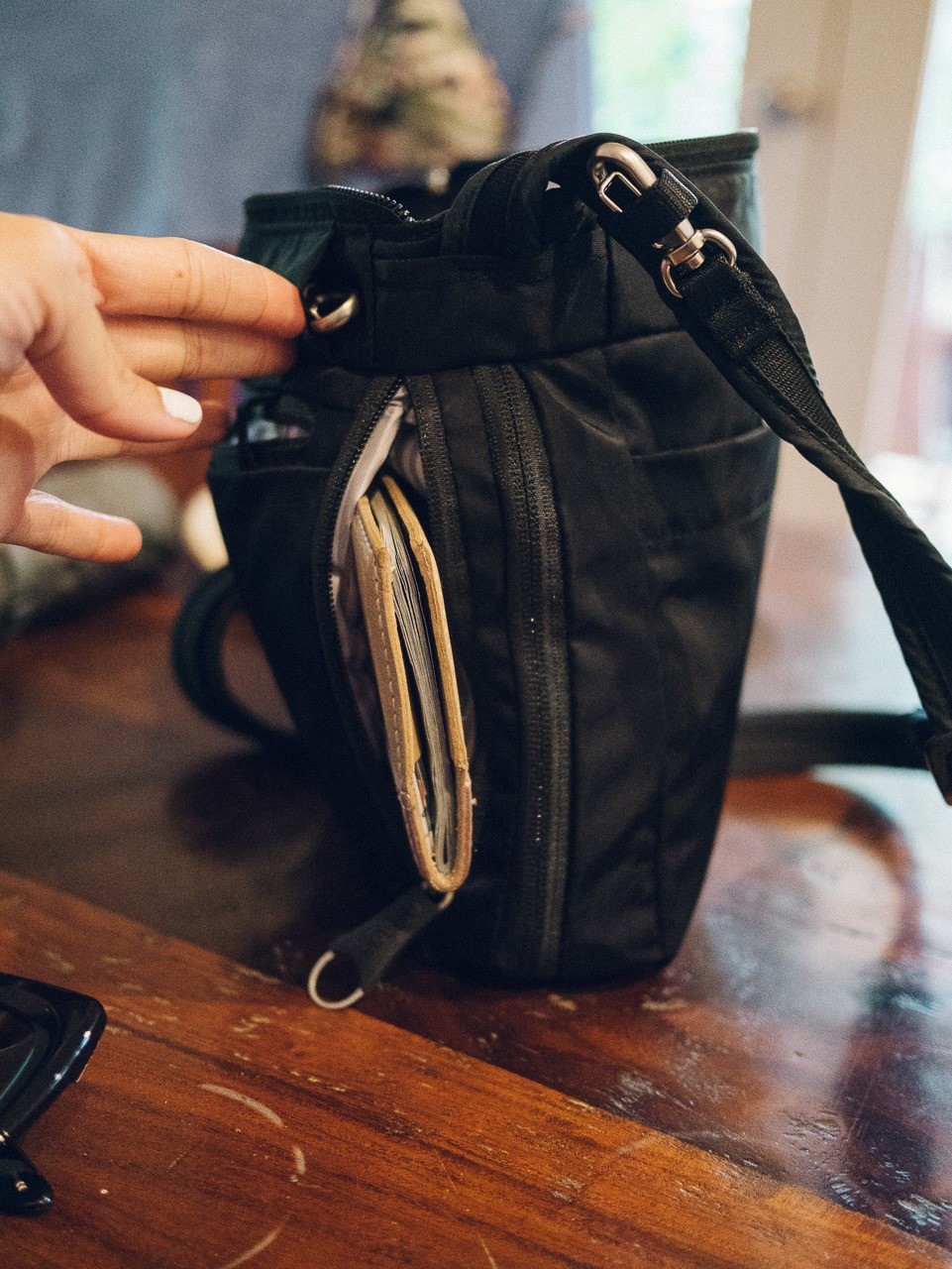 Keeping your money safe while you travel is imperative and as the years go by, I think about it a lot less than I used to. I wrote an article about how to keep your money safe while traveling and wrote about my hate for money belts in the past – I shared tips on how to hide extra cards and cash. You can read all about those tips here. For me, it’s about traveling as you would at home but having back-ups set aside. You also have to be more alert. Money belts aren’t exactly inconspicuous! But these days with people talking about bag-slashing and such, readers ask me ALL THE TIME about buying anti-theft bags. There are tons of them on the market but as I always go for Ebags brands (they tend to be of the same quality but cheaper price tags), I decided to try one out and share it with you. This is an Ebags anti-theft purse review!