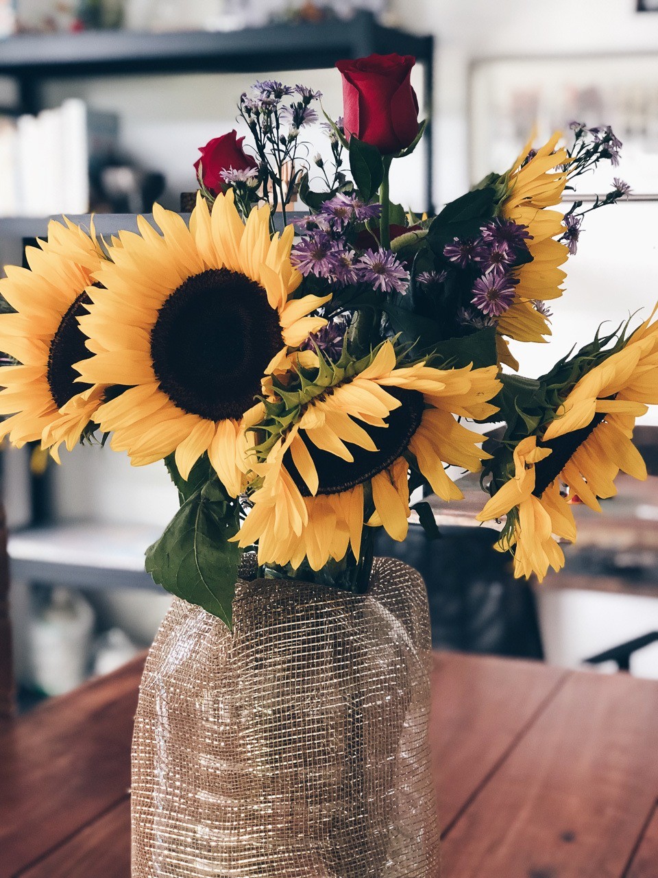 Ben’s mom send my sunflowers for my birthday! They are my favorite flower and it was so nice – thanks, Alex!
