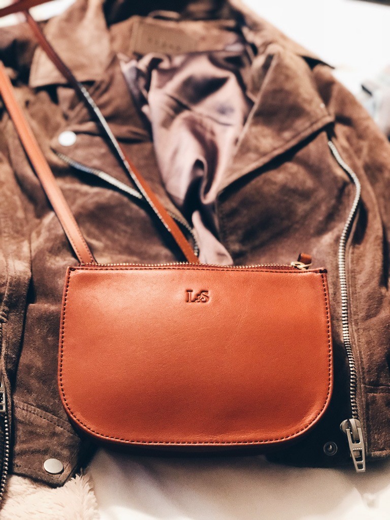 The suede jacket in the photo above and below with that purse is from Nordstrom. It’s called “BLANKNYC”. It was less than $200 which for a jacket like this is fine for me! I have worn the same black leather jacket for 8 years and if this one ends up being the same, it’s well worth it. I got the color “midnight toker”. This is the link to it on Nordstrom or below are other places to buy it from.