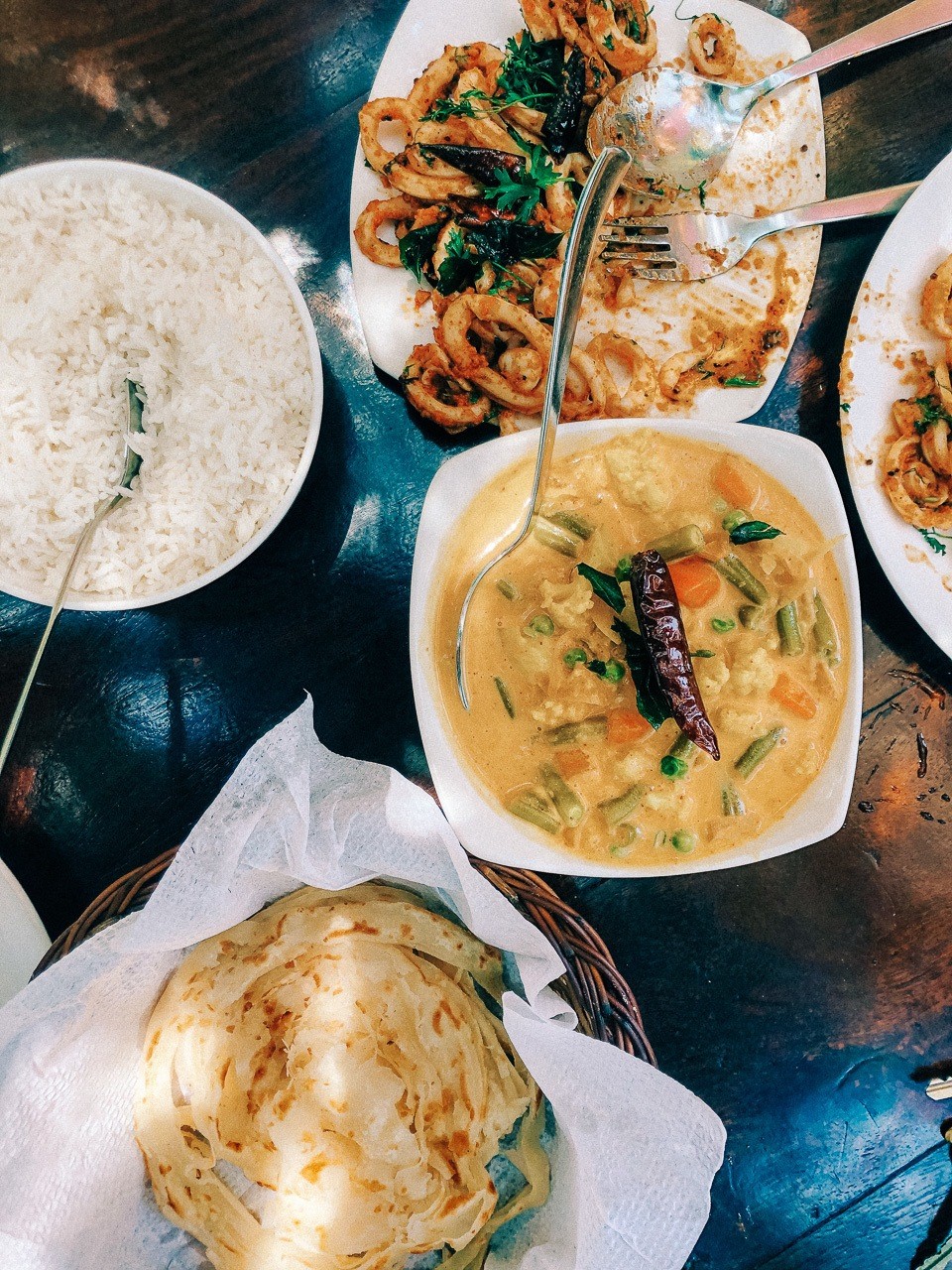 North Goa has the largest selection of places to eat, a lot of them better than most places you would find in your hometowns. There are beach shacks, fancy restaurants, pizzerias, sunset dining options, juice bars, vegan spots and even a few restaurants that offer shows and more of an late-night experience. Check out La Plage, A Reverie, Gunpowder, Calamari, Fat Fish, Thalassa, Bean Me Up, Luna’s Ristorante, Sublime, Artjuna, Eva’s Cafe…I could literally go on forever. On Rachel’s last trip, she ate at a lot of places in North Goa.